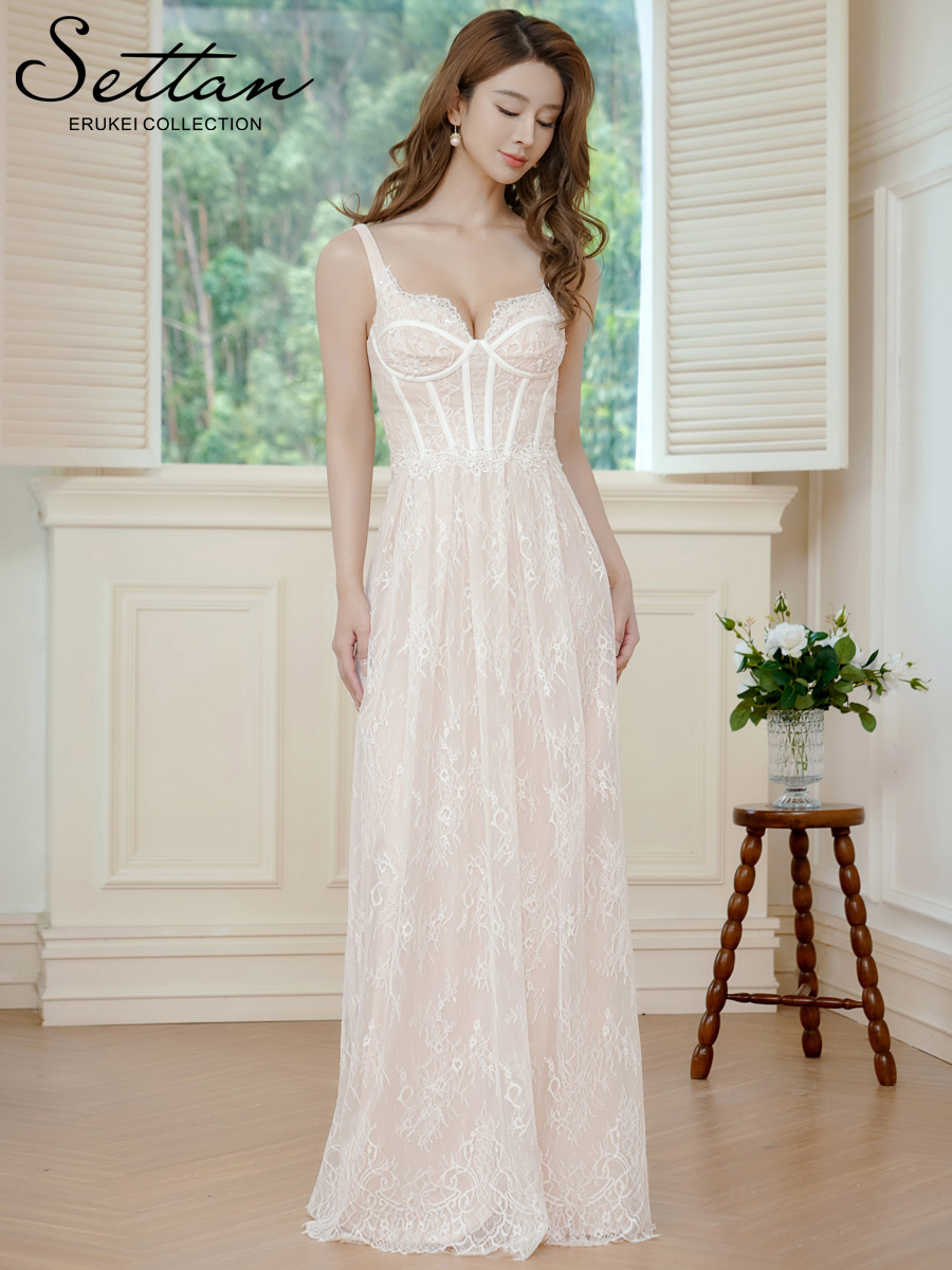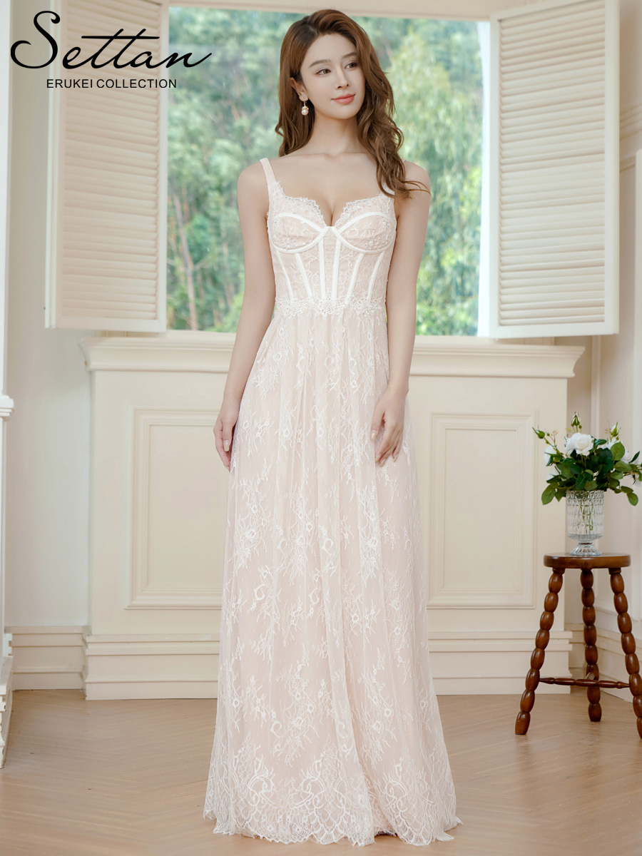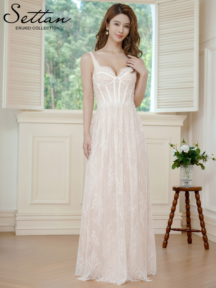 XS-Lサイズあり【SETTAN/セッタン】総レース/ コルセット/ ビーズ/ スパンコール刺繍/ Aライン/ ロングドレス / キャバドレス long[OF2]