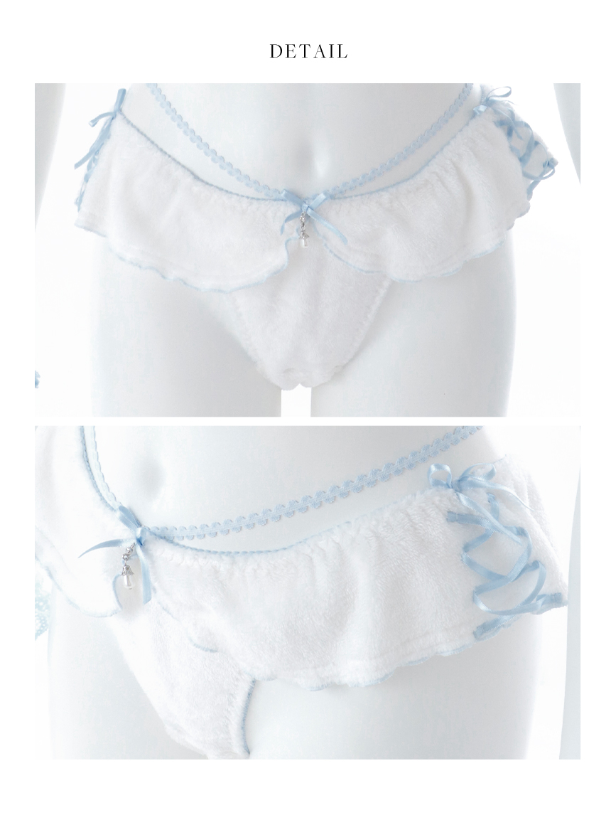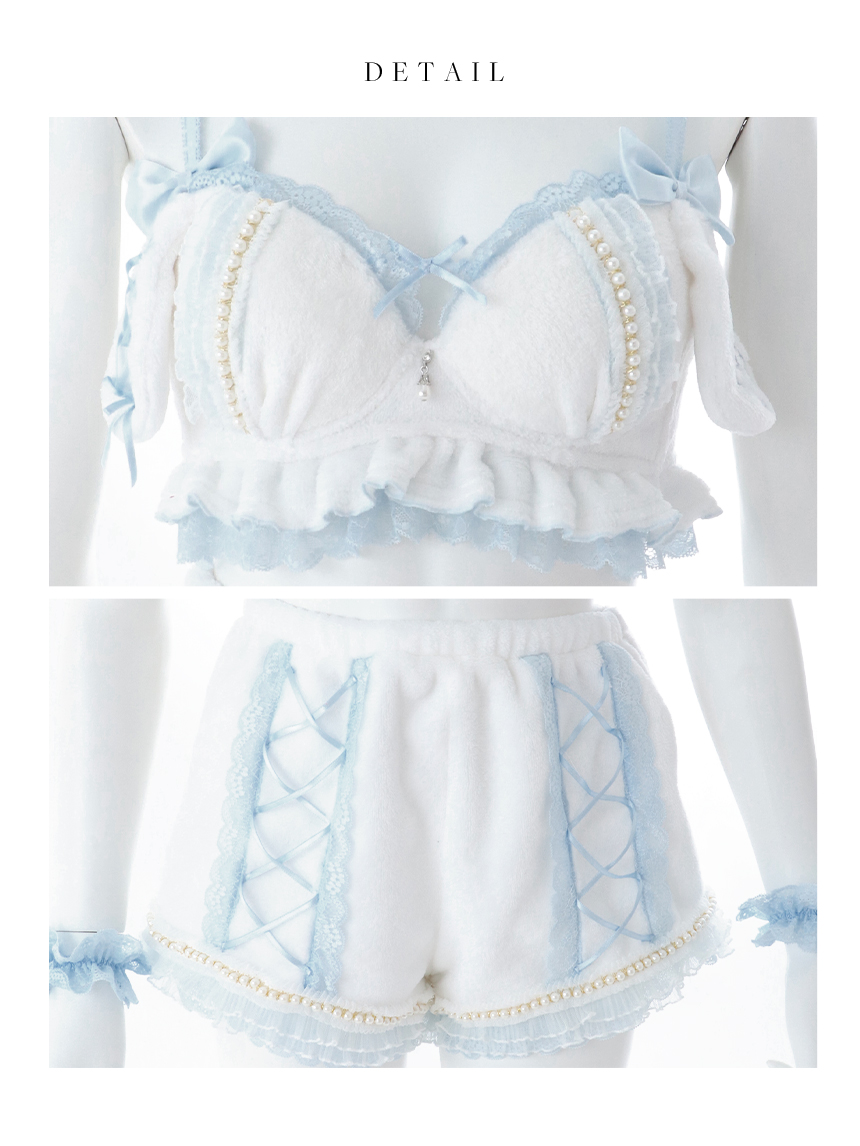 ホワイト ライトブルー 白色 水色 レース リボン フリル セットアップ