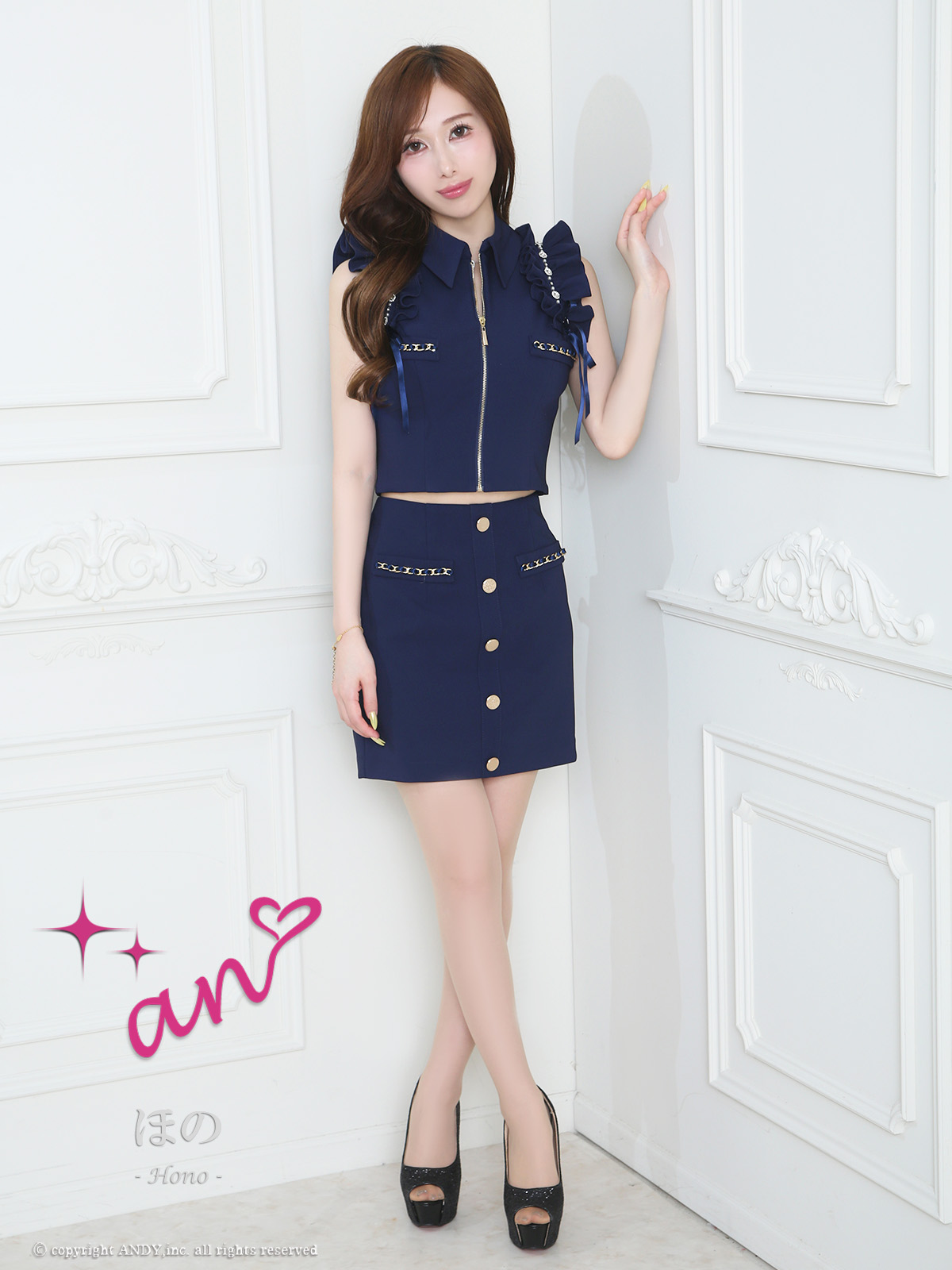 - > XSサイズあり【an /アン】襟付き/ ビジュー/ フロントジップ/ ノースリーブ/ フリル/ リボン/タイト/ セットアップ/ ツーピース/ ミニドレス/ キャバドレス[OF05]