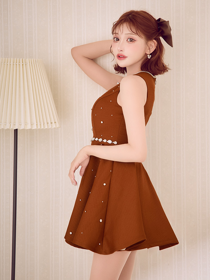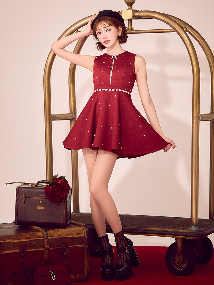 XSサイズあり【ROBE de FLEURS/ローブドフルール】リボンビジュー/ バストカット/ フレア/ ミニドレス/ キャバドレス[OF08]【一部予約商品/10月中旬発送予定】 [FM3618-R-S251001]