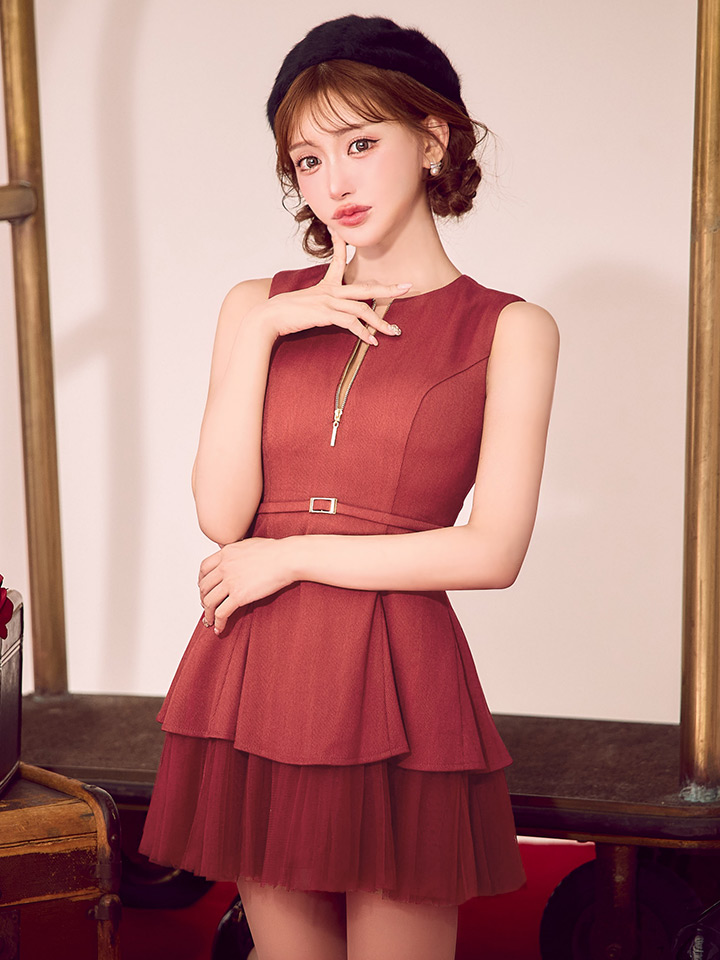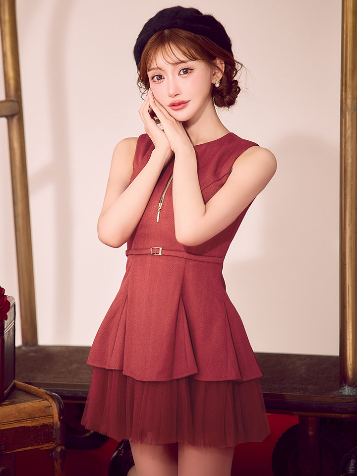 XS-Lサイズあり【DEA./ディア】ノースリーブ/ ベルトデザイン/ チュール/ フレア/ ミニドレス/ キャバドレス[OF08] [DE3444-R-S251001]