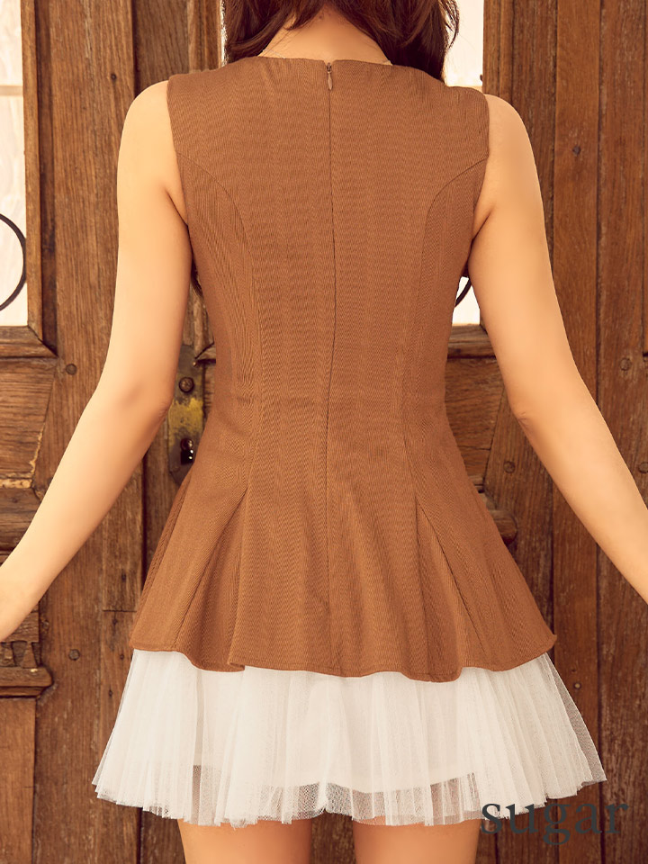 XS-Lサイズあり【DEA./ディア】ノースリーブ/ ベルトデザイン/ チュール/ フレア/ ミニドレス/ キャバドレス[OF08]