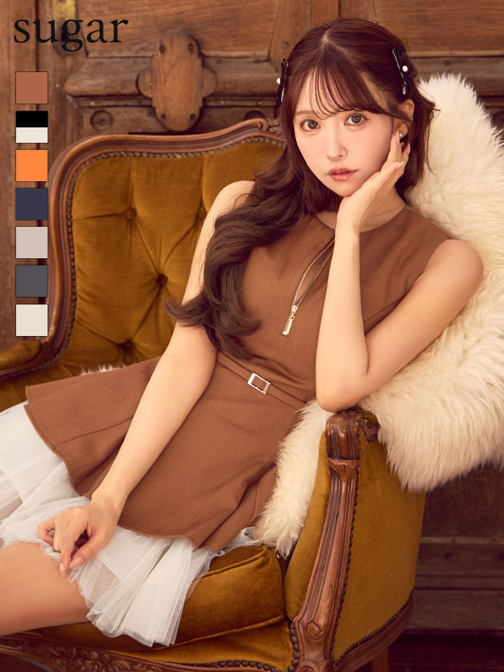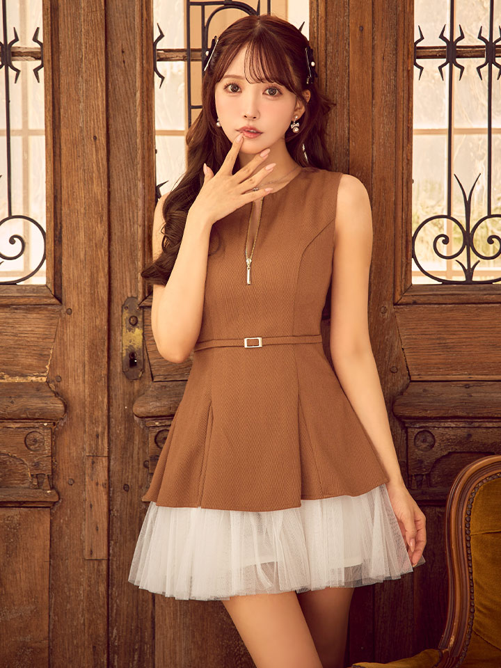- > XS-Lサイズあり【DEA./ディア】ノースリーブ/ ベルトデザイン/ チュール/ フレア/ ミニドレス/ キャバドレス[OF08]