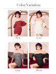 オフショルデザインでデコルテを美しく見せつつ、スタイルアップ効果も抜群。