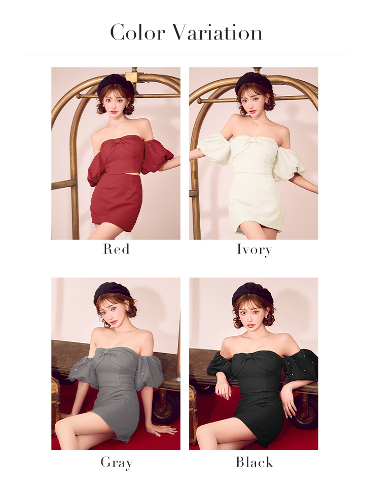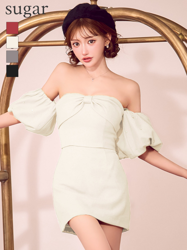 - > 【予約商品/10月上旬発送予定】XSサイズあり【ROBE de FLEURS/ローブドフルール】オフショルダー/ ビックリボン/ セットアップ/ タイト/ ミニドレス/ キャバドレス[OF08]