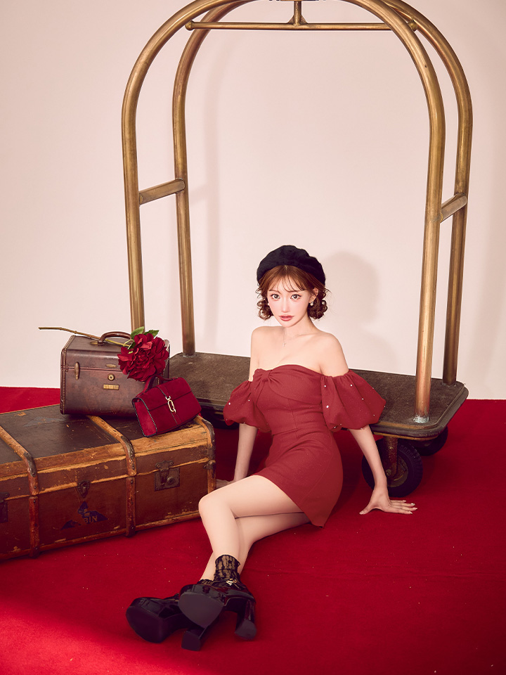 【予約商品/10月上旬発送予定】XSサイズあり【ROBE de FLEURS/ローブドフルール】オフショルダー/ ビックリボン/ セットアップ/ タイト/ ミニドレス/ キャバドレス[OF08] [FM4700-R-S251001]