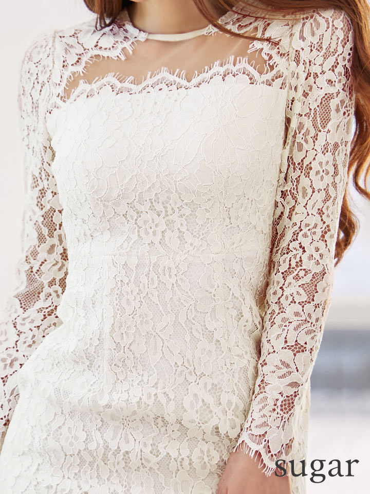 - > XS-Lサイズあり【ERUKEI エルケイ】総レース/ シアー/ ロングスリーブ/ 長袖/ タイト/ 膝丈/ ワンピース/ ミディアムドレス/ キャバドレス[OF2]