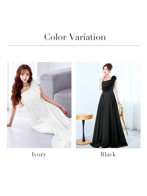 Lサイズあり【CLEO CLOE/ クレオ クロエ】パーティードレス/ ステージドレス/ イベントドレス/ 立体フラワーフリル/ アシメショルダー/ ノースリーブ/ Aライン/ フレア/ ロングドレス long[OF05]