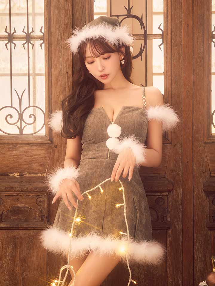 グレー 灰色 スカート ミニスカート フレアスカート 胸盛り ファー 肩出し
