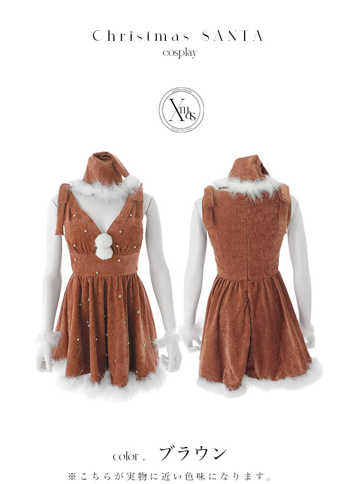 【即日発送】【サンタ】ショルダーリボンビジューツイードフレアサンタコスプレ【コスプレ4点セット】【XS-XLサイズ/1カラー】[HC02] [SS-202-SB-dzw-BR-25MY]