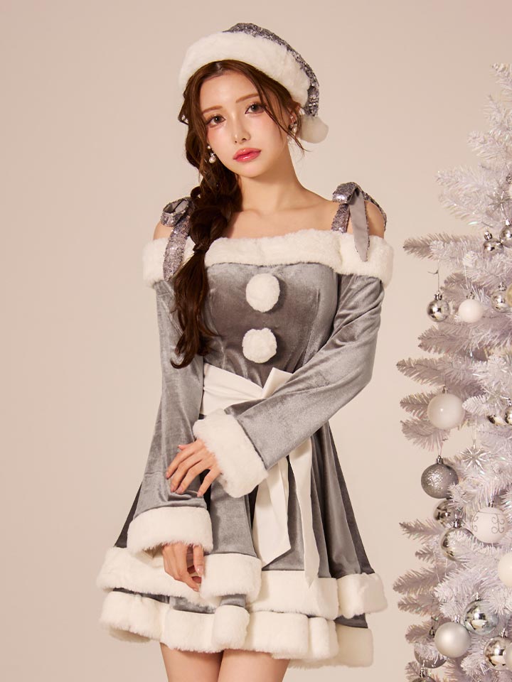 - > 【sugar nine サンタコス 4点セット】【XS-XLサイズ/8カラー】グリッターリボン2段フレアサンタコスプレ[HC02]