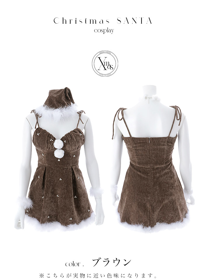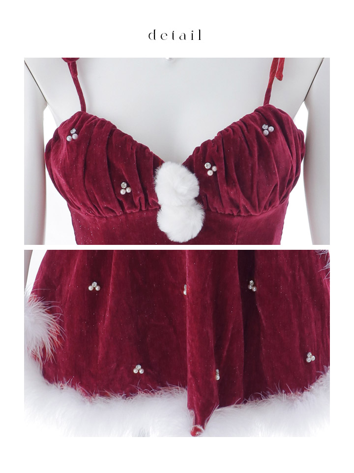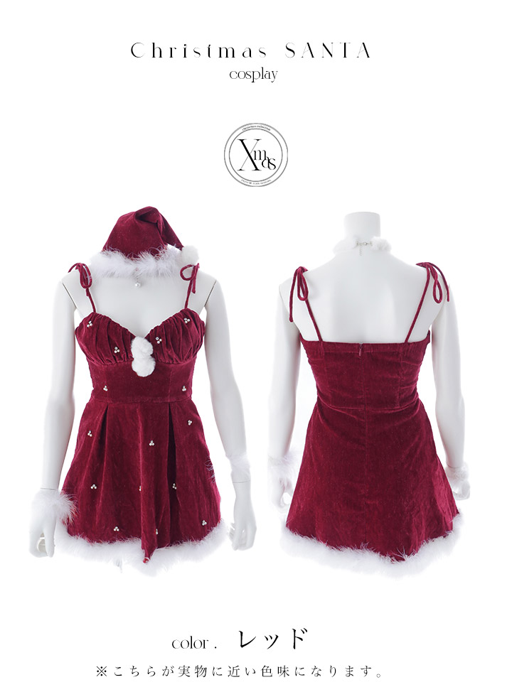 - > 【即日発送】【サンタ】 紐リボンフレアビジューサンタコスプレ【コスプレ5点セット】【XS-Mサイズ/2カラー】[HC03]