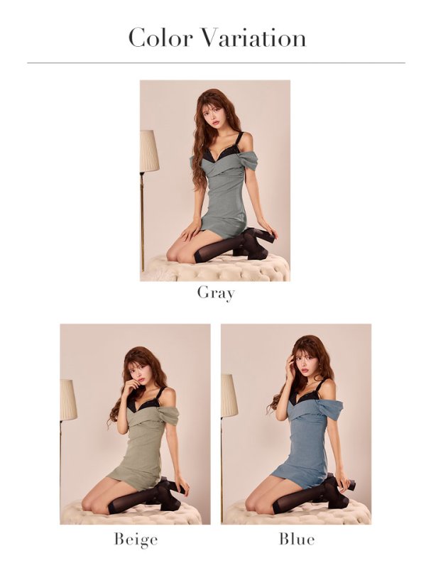 XSサイズあり【ANGEL R/エンジェルアール】バストレース/ リボン/ スリーブ/ タック/ クロスデザイン/ タイト/ マイクロミニドレス/ キャバドレス[OF2] [AR25857-GY-S251004]