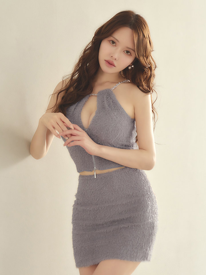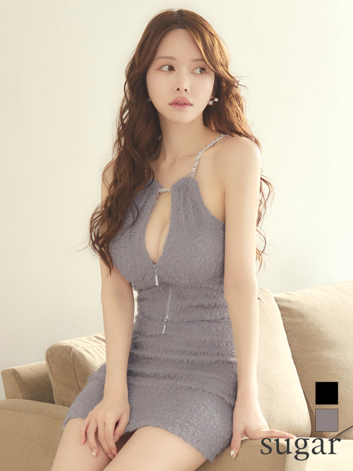 - > XSサイズあり【Glossy/グロッシー】ふわふわ起毛/ ホルターネック/ セットアップ/ タイト/ ミニドレス/ キャバドレス[OF08]