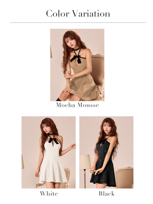 XSサイズあり【IRMA/イルマ】ホルターネック/ ベロアリボン/ レース/ バストスリット/ ストレッチ/ フレア/ ミニドレス/ キャバドレス[OF2A] [51956-IR-B-S251006]