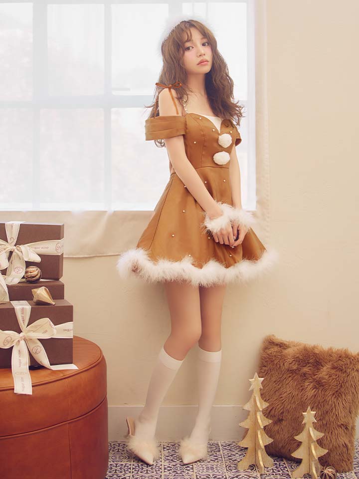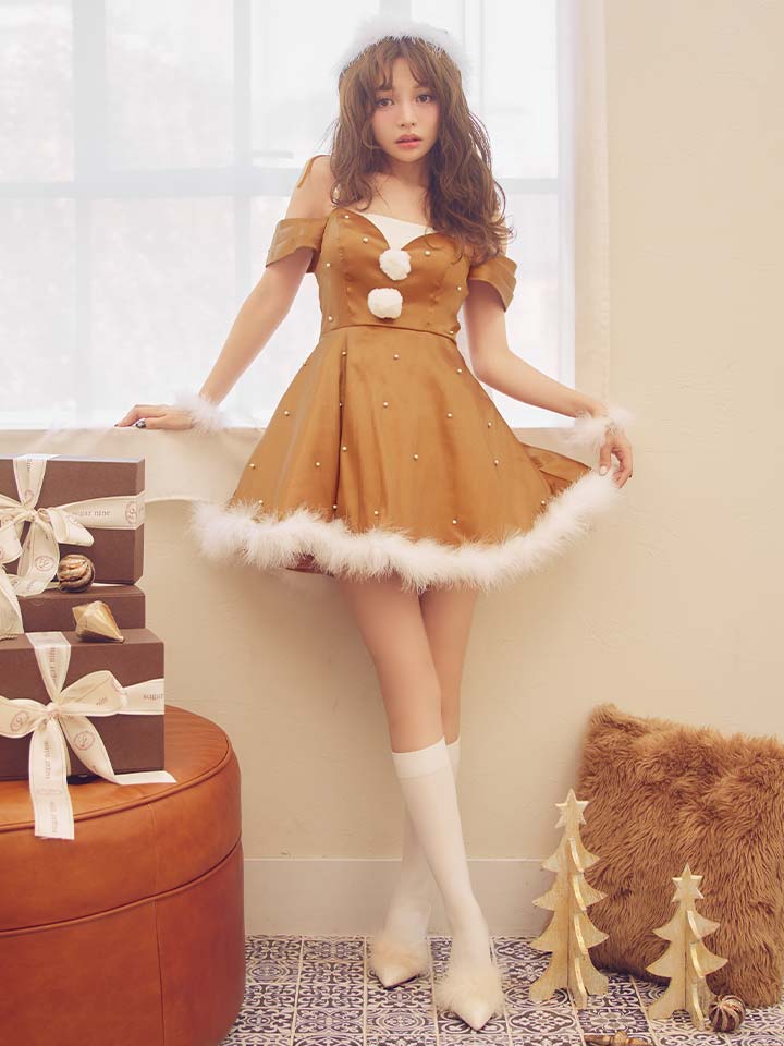 - > 【ノベルティ対象】【即日発送】【サンタ】オーガンジーオフショルサンタコスプレ【コスプレ4点セット】【XS-Lサイズ/2カラー】[OF03]