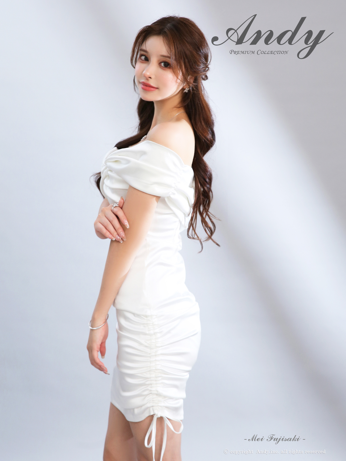 【ANDY/アンディ】ストレッチ/ サテン/ オフショル/ サイドギャザー/ リボン/ タイト/ ミニドレス/ キャバドレス[OF05] [ON2999-BE-2510]