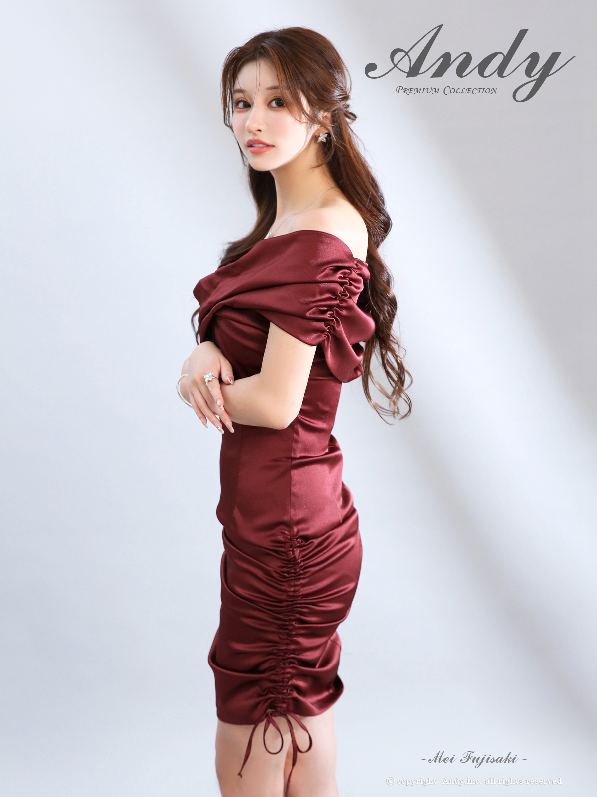 【ANDY/アンディ】ストレッチ/ サテン/ オフショル/ サイドギャザー/ リボン/ タイト/ ミニドレス/ キャバドレス[OF05]