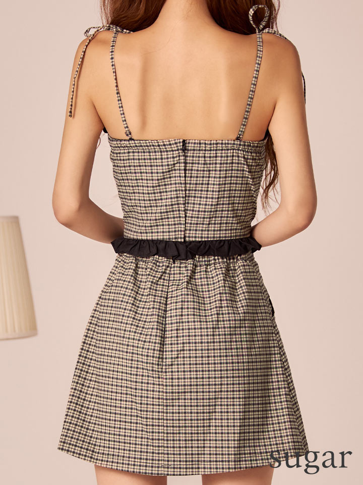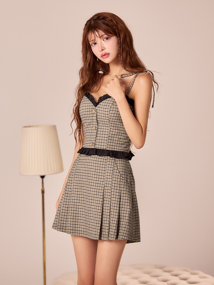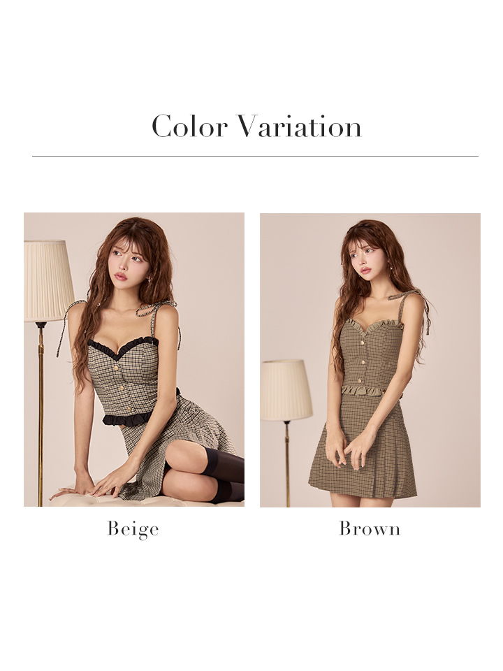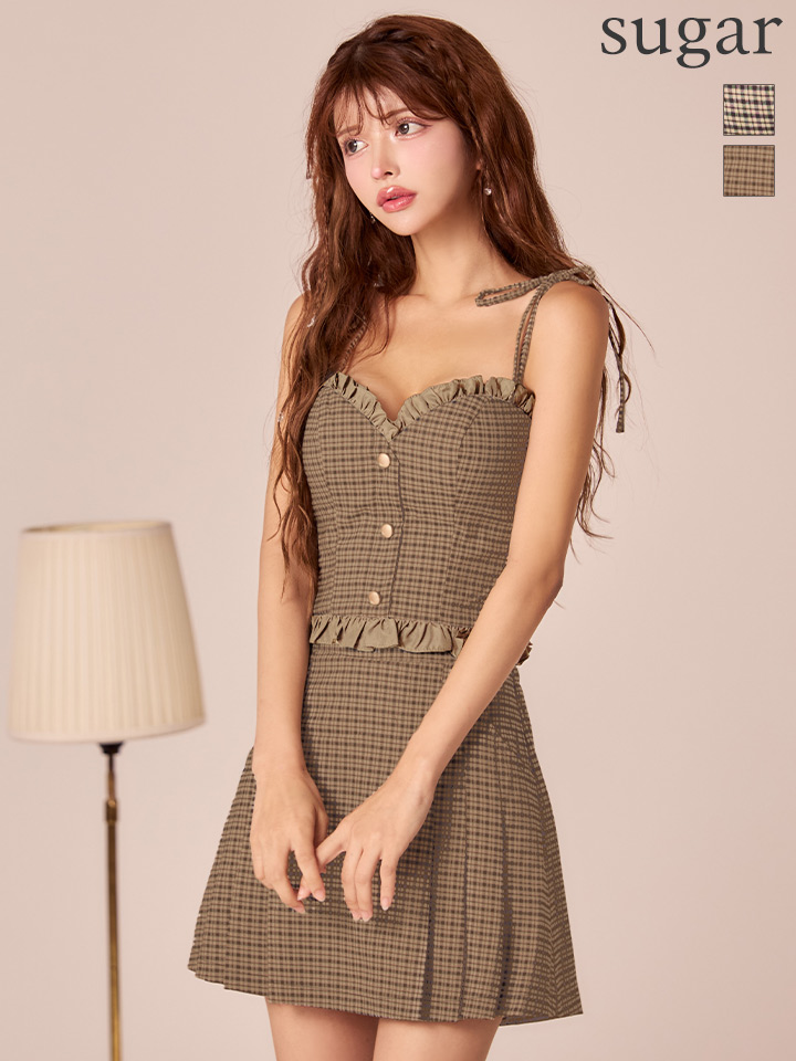 XSサイズあり【ANGEL R/エンジェルアール】ベアトップ/ 2way/ フリル/ チェック/ フロントボタン/ プリーツ/ フレア/ マイクロミニドレス/ キャバドレス[OF2] [AR25341-BE-S251008]