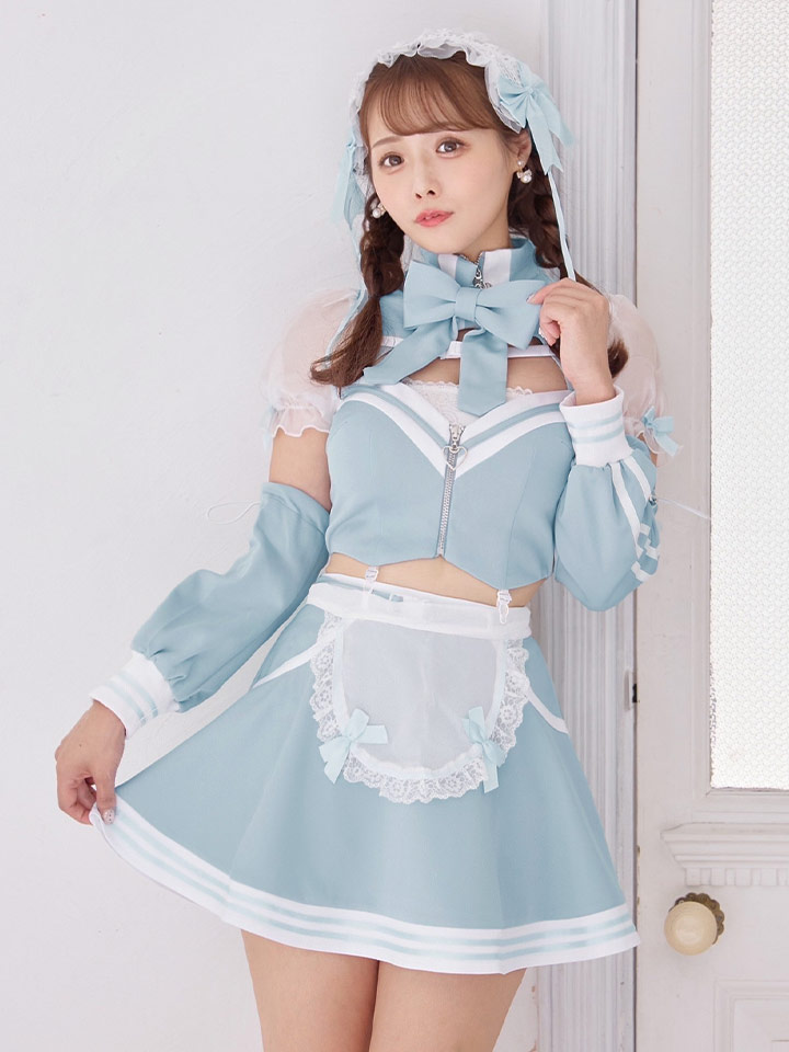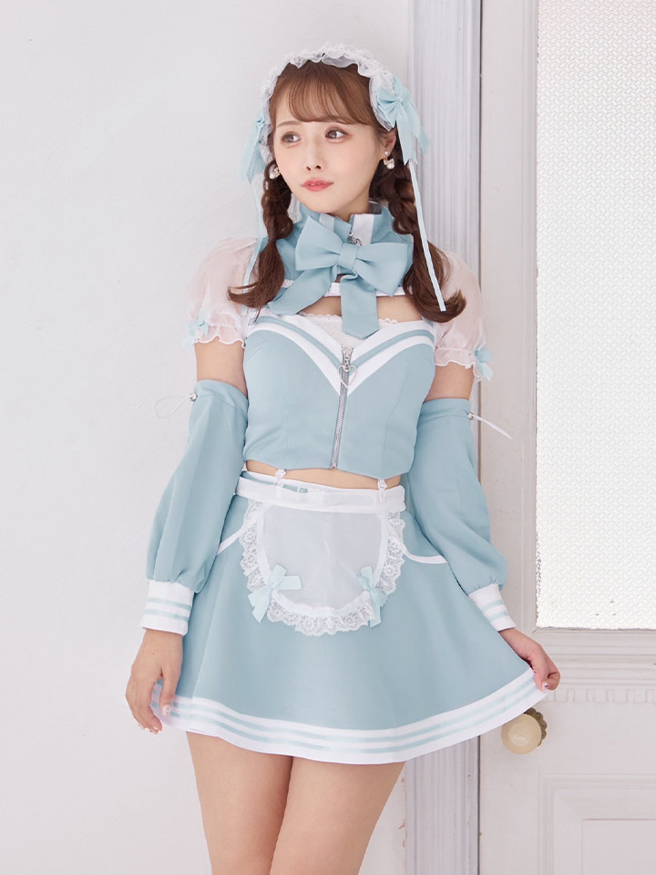 メイド リボン 甘い あざと コンカフェ スイート あまい フレア ミニ セットアップ セクシー コスプレ