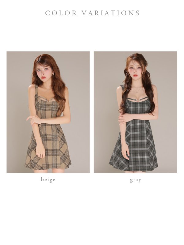 XSサイズあり【DEA./ディア】ふんわり起毛/ チェック/ キャミソール/ フレア/ ミニドレス/ キャバドレス[OF08] [DE4608-GY-2510]
