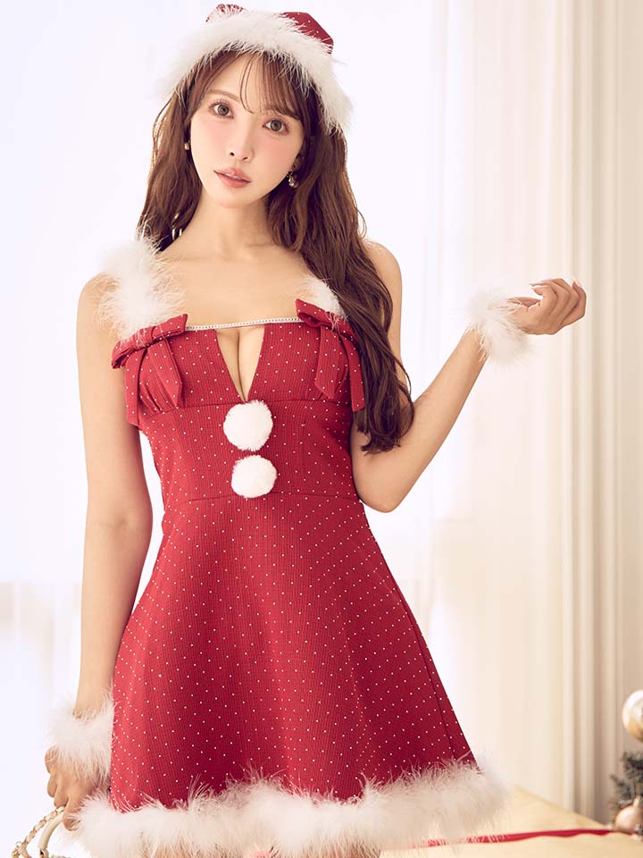 - > 【ノベルティ対象】【即日発送】【サンタ】リボンファーサンタコスプレ【コスプレ4点セット】【XS-XLサイズ/2カラー】[OF03]