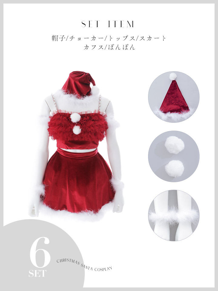 - > 【ノベルティ対象】【即日発送】【送料無料!】【サンタ】チュールフリルオフショルセットアップサンタコスプレ【コスプレ6点セット】【XS-Lサイズ/2カラー】[OF03]