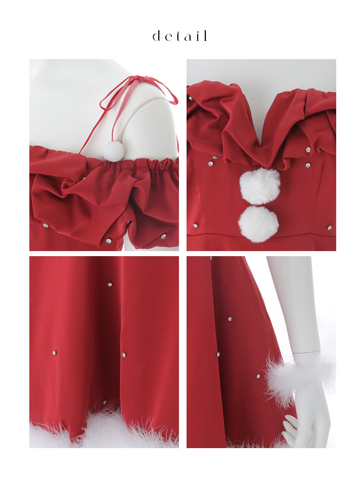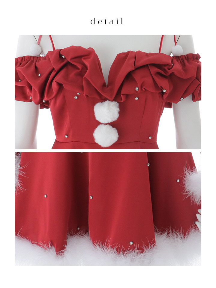 【ノベルティ対象】【即日発送】【送料無料!】【サンタ】リボンキャミオフショルフリルサンタコスプレ【コスプレ4点セット】【XS-Lサイズ/2カラー】[OF03] [SS-152-YN-dzw-R-25YM]
