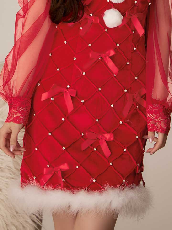 - > 【即日発送!】【サンタコス 3点セット】【XS-XLサイズ/2カラー】キルティングリボン袖付きタイトサンタ[HC03]