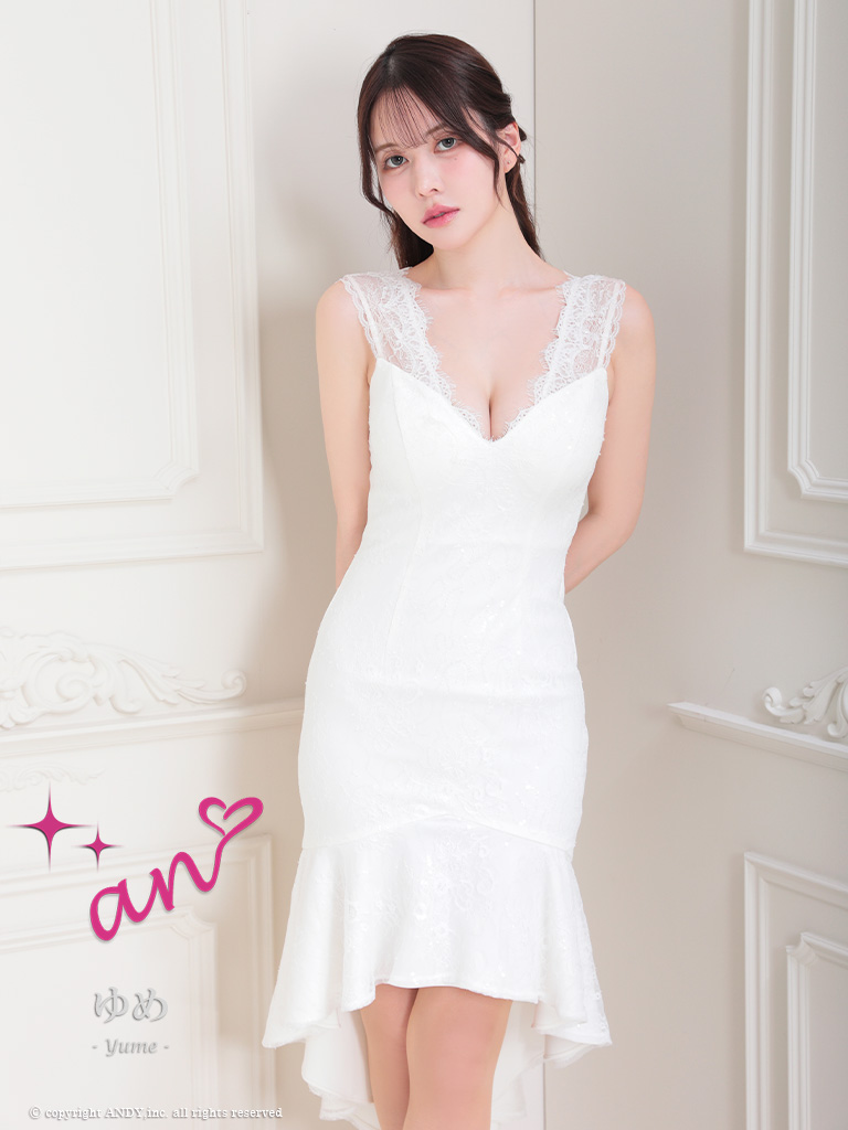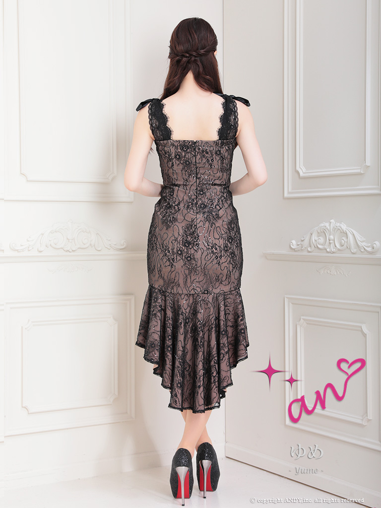 - > 【an /アン】総レース/ ショルダーリボン/ テールカット/ マーメイド/ ノースリーブ/ ミディアムドレス/ キャバドレス[OF05]