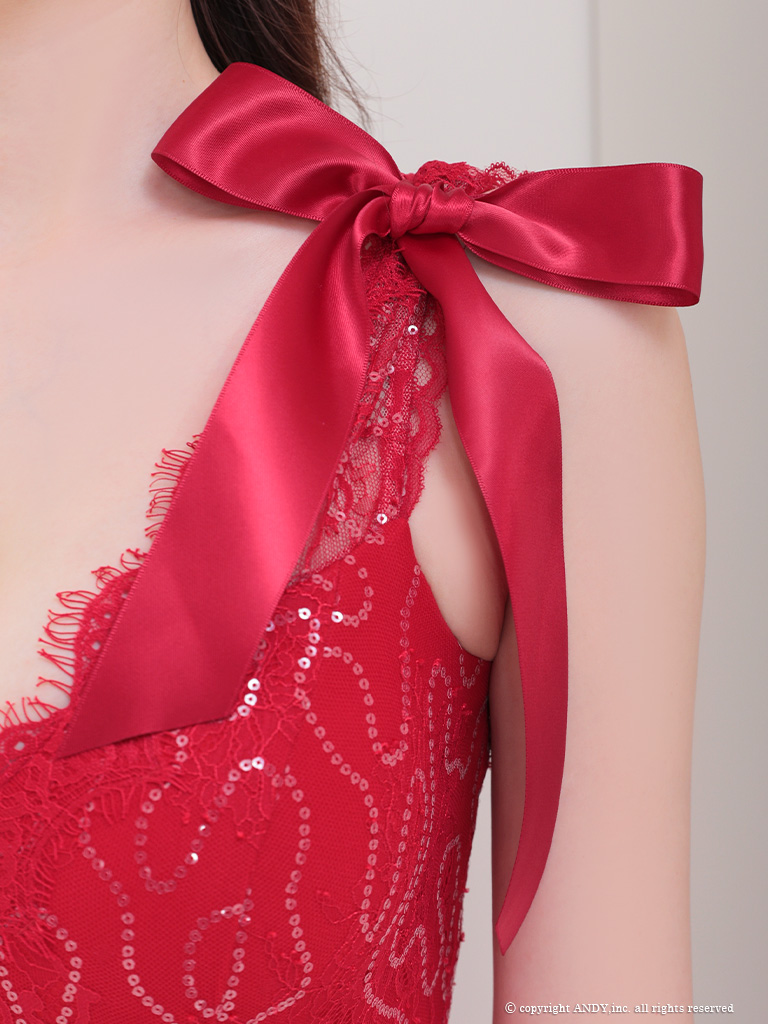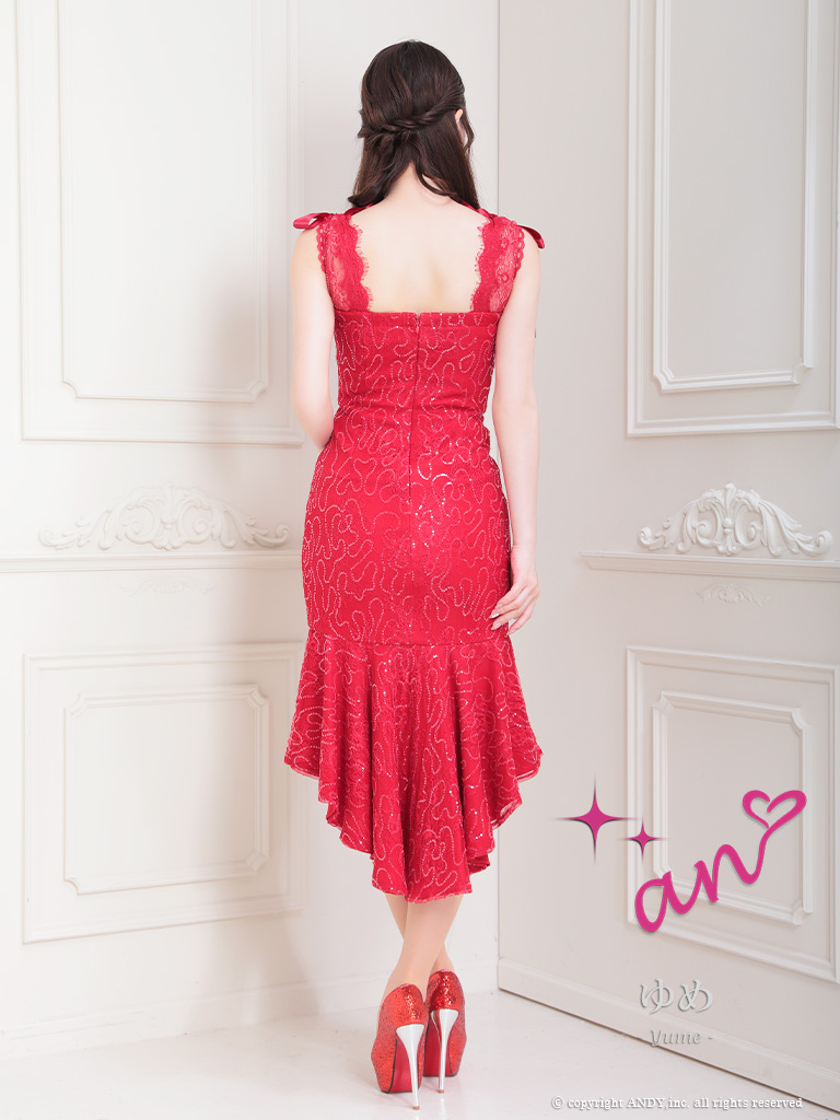【an /アン】総レース/ ショルダーリボン/ テールカット/ マーメイド/ ノースリーブ/ ミディアムドレス/ キャバドレス[OF05] [AOC3723-R-2510]