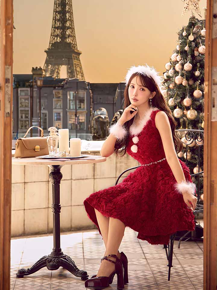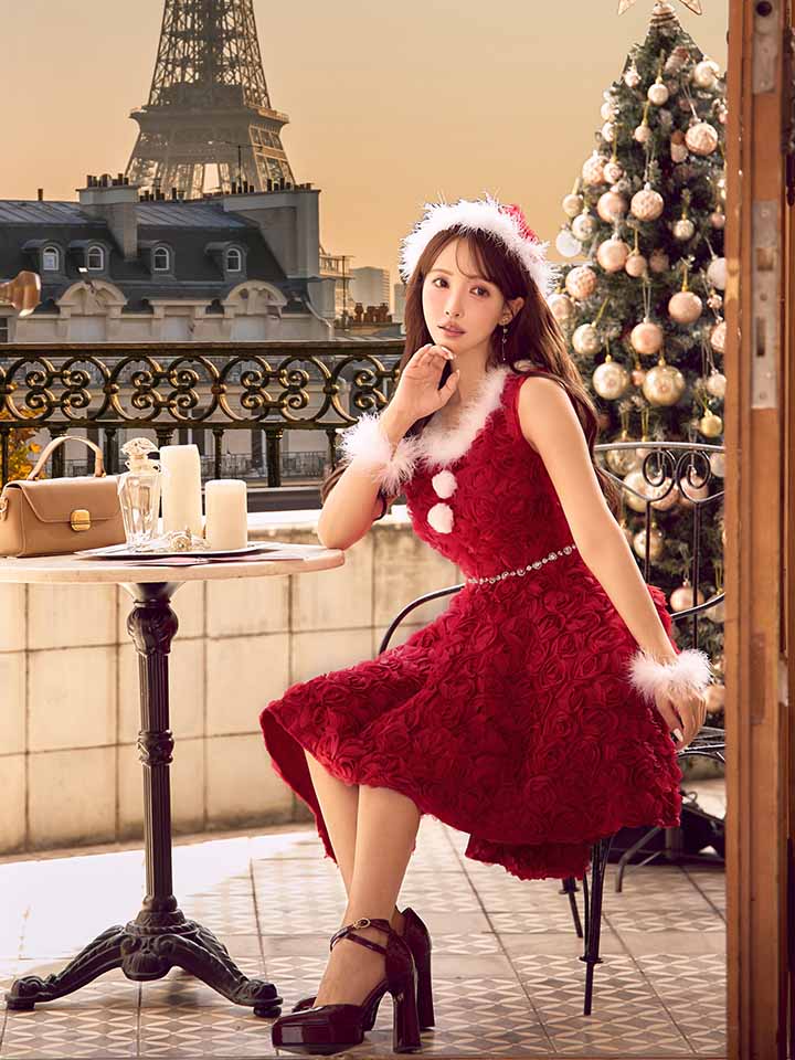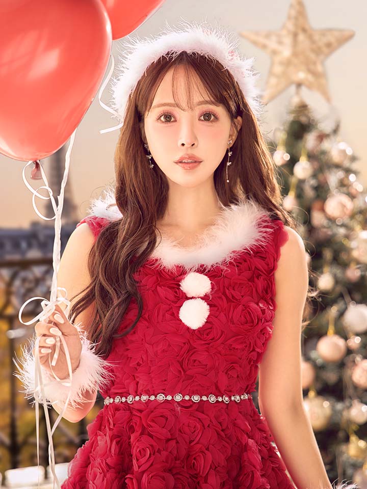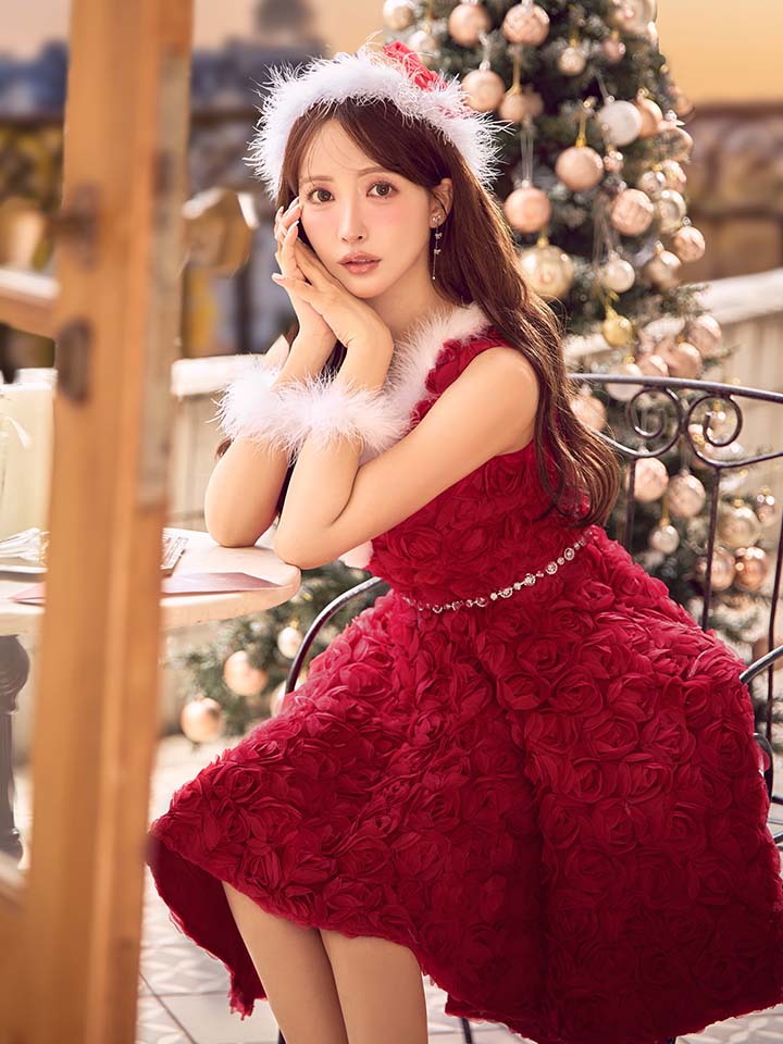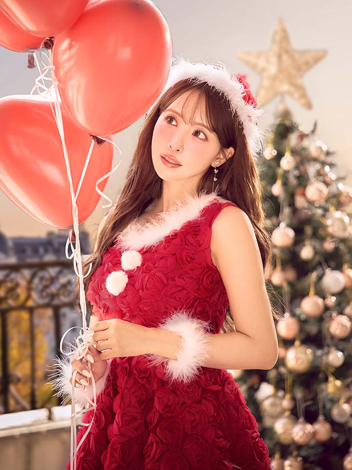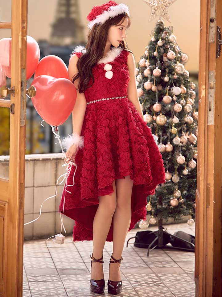#フレア #ワンピース #ノースリーブ #ショートインスカート #立体ローズ #クリスマス #パーティ #サンタコス #サンタさん