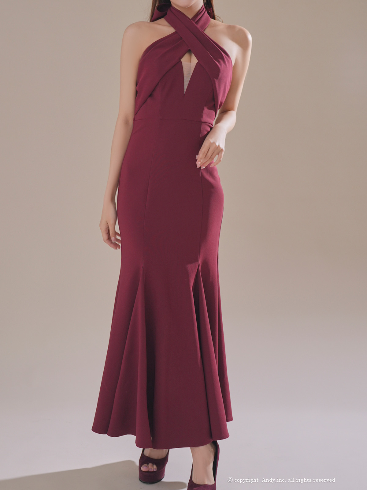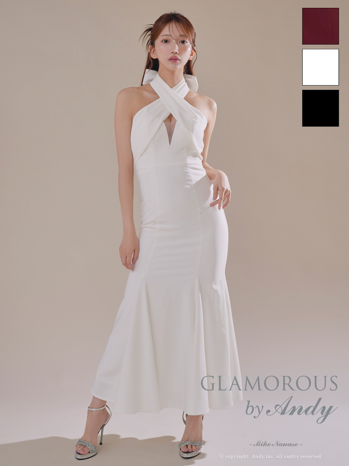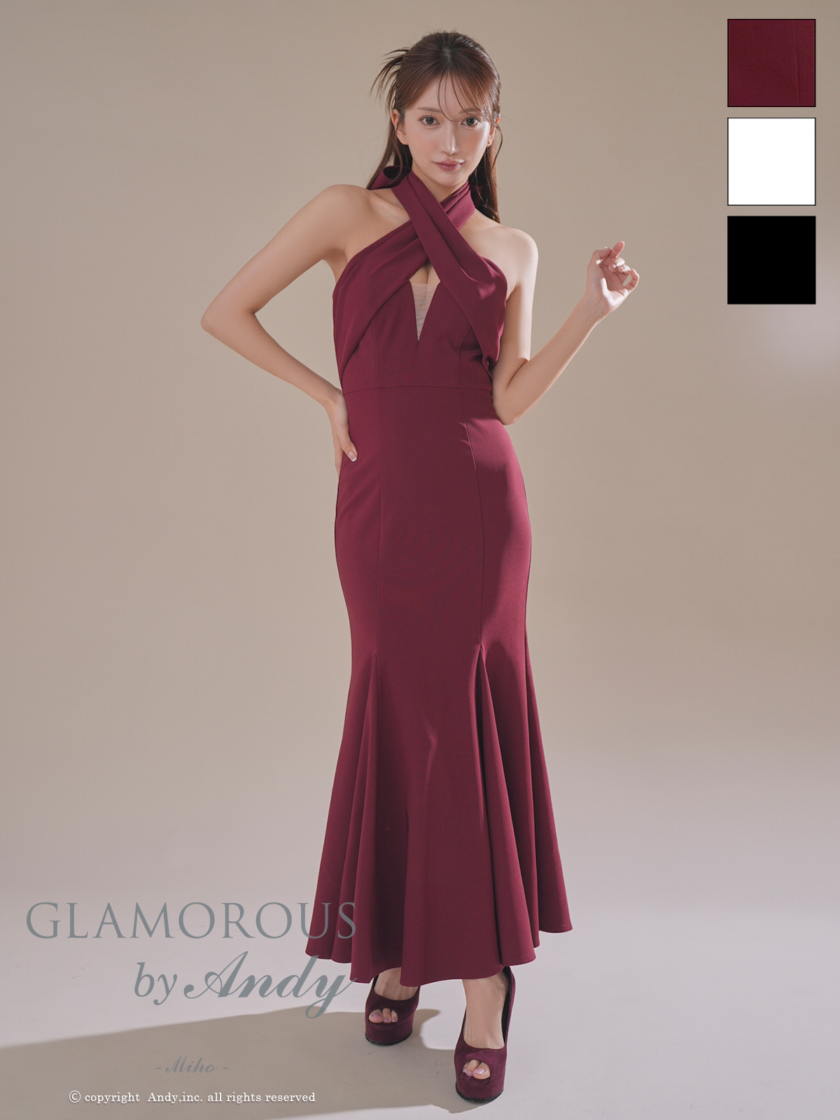 【Andy GLAMOROUS/アンディグラマラス】クロスホルター/ バストシアー/ ストレッチ/ シンプル/ マーメイド/ ロングドレス/ キャバドレス long[OF05] [GMS-V882-WR-S251010]