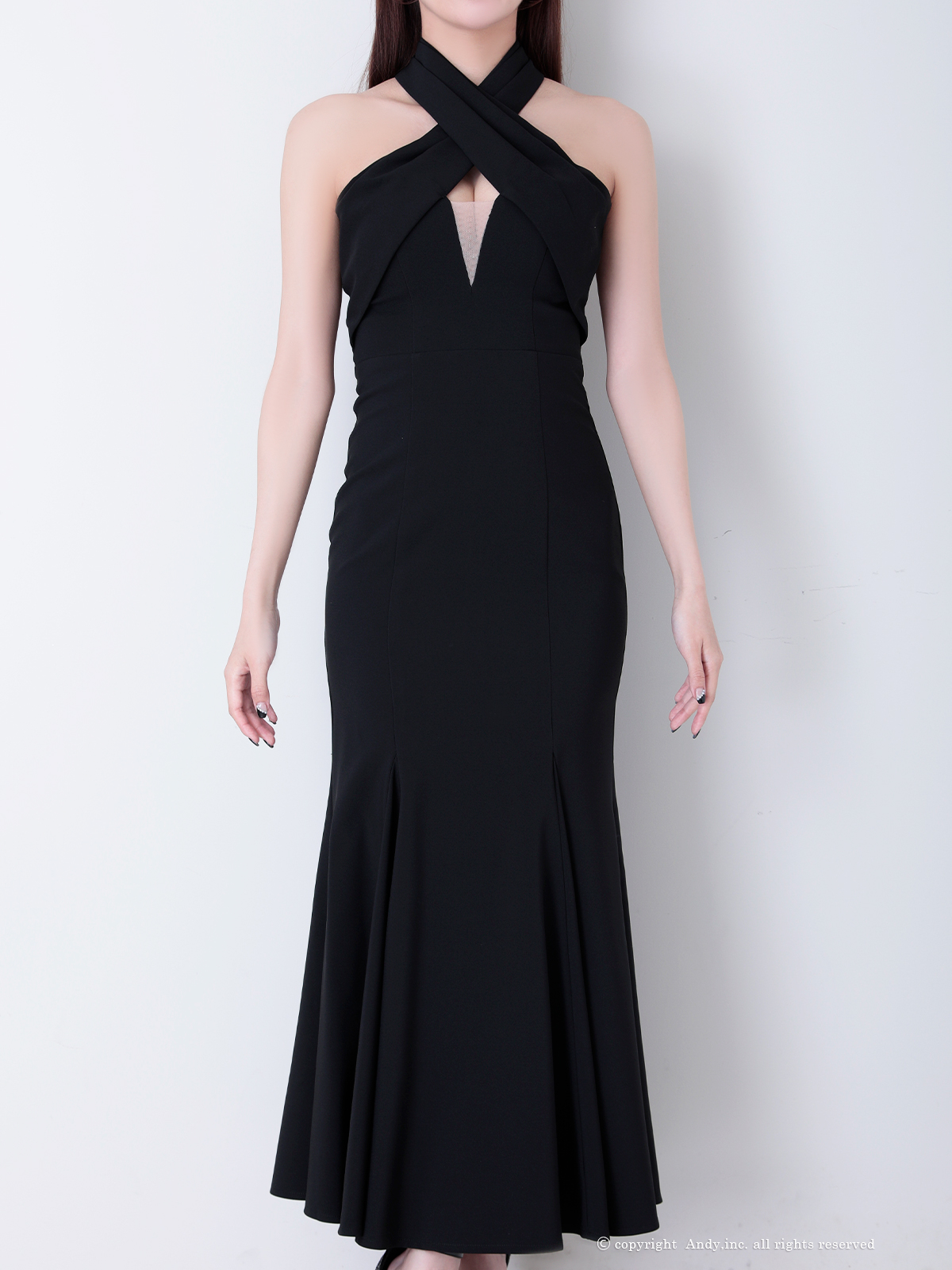 【Andy GLAMOROUS/アンディグラマラス】クロスホルター/ バストシアー/ ストレッチ/ シンプル/ マーメイド/ ロングドレス/ キャバドレス long[OF05]
