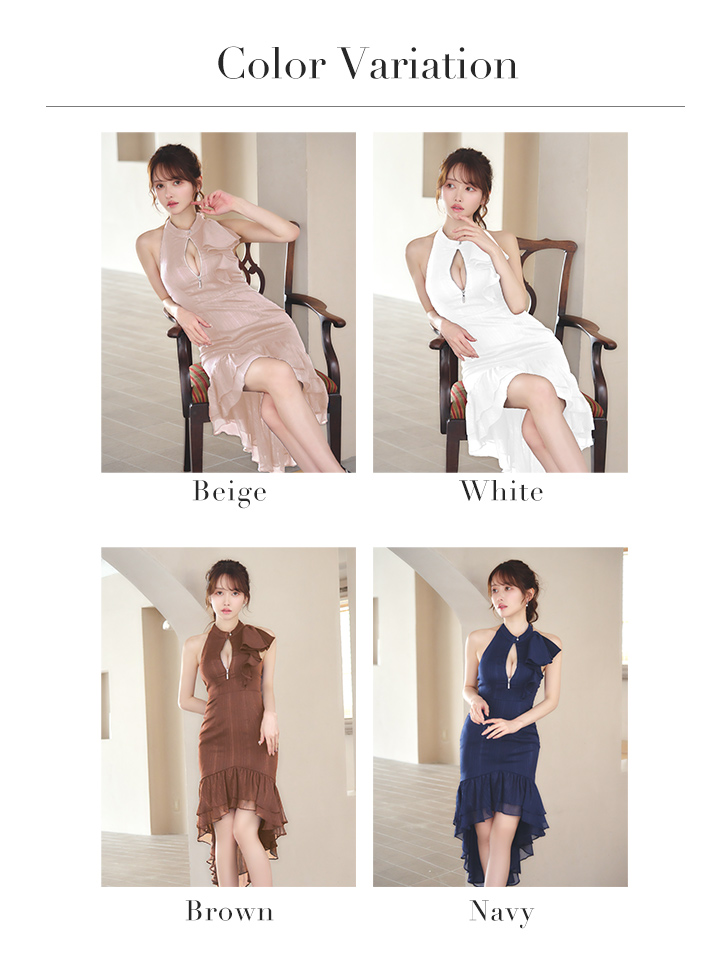 - > XSサイズあり【an /アン】ラメ/ ホルターネック/ バストジップ/ ショルダーフリル/ テールカット/ マーメイド/ ミディアムドレス/ キャバドレス[OF05]