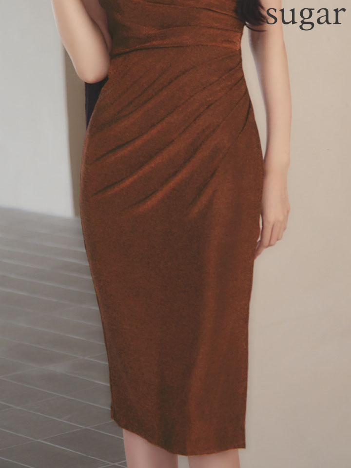 上品に煌めくラメニットがラグジュアリーなタイトミディアムドレス♡