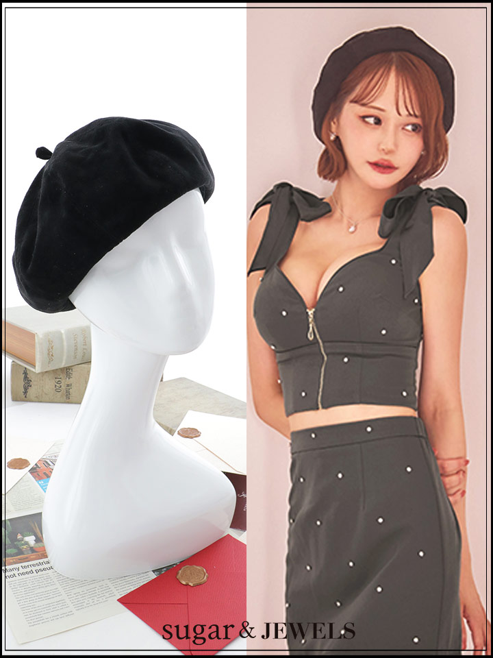 【帽子】ブラックスエードベレー帽【1カラー】[OF03]