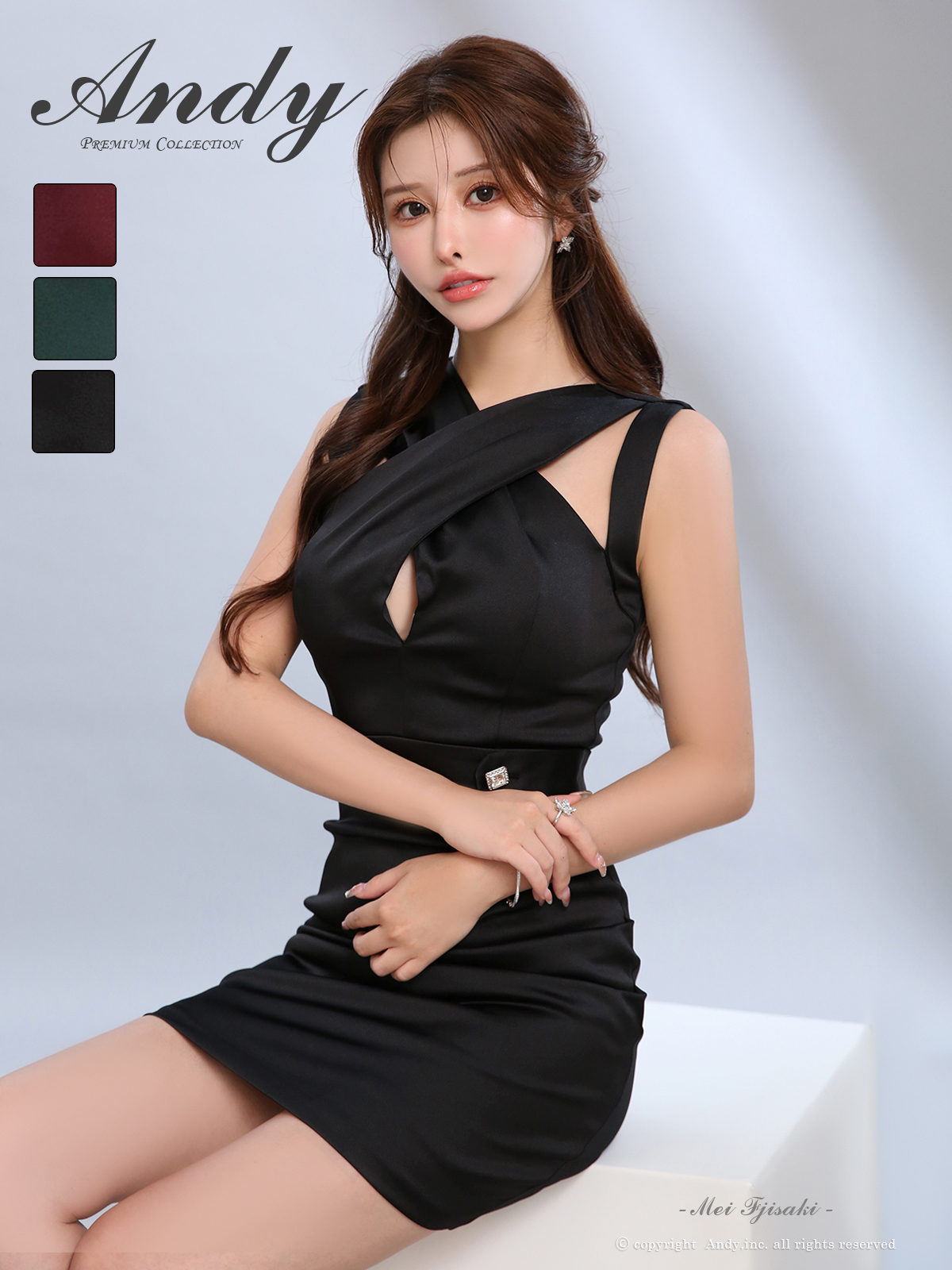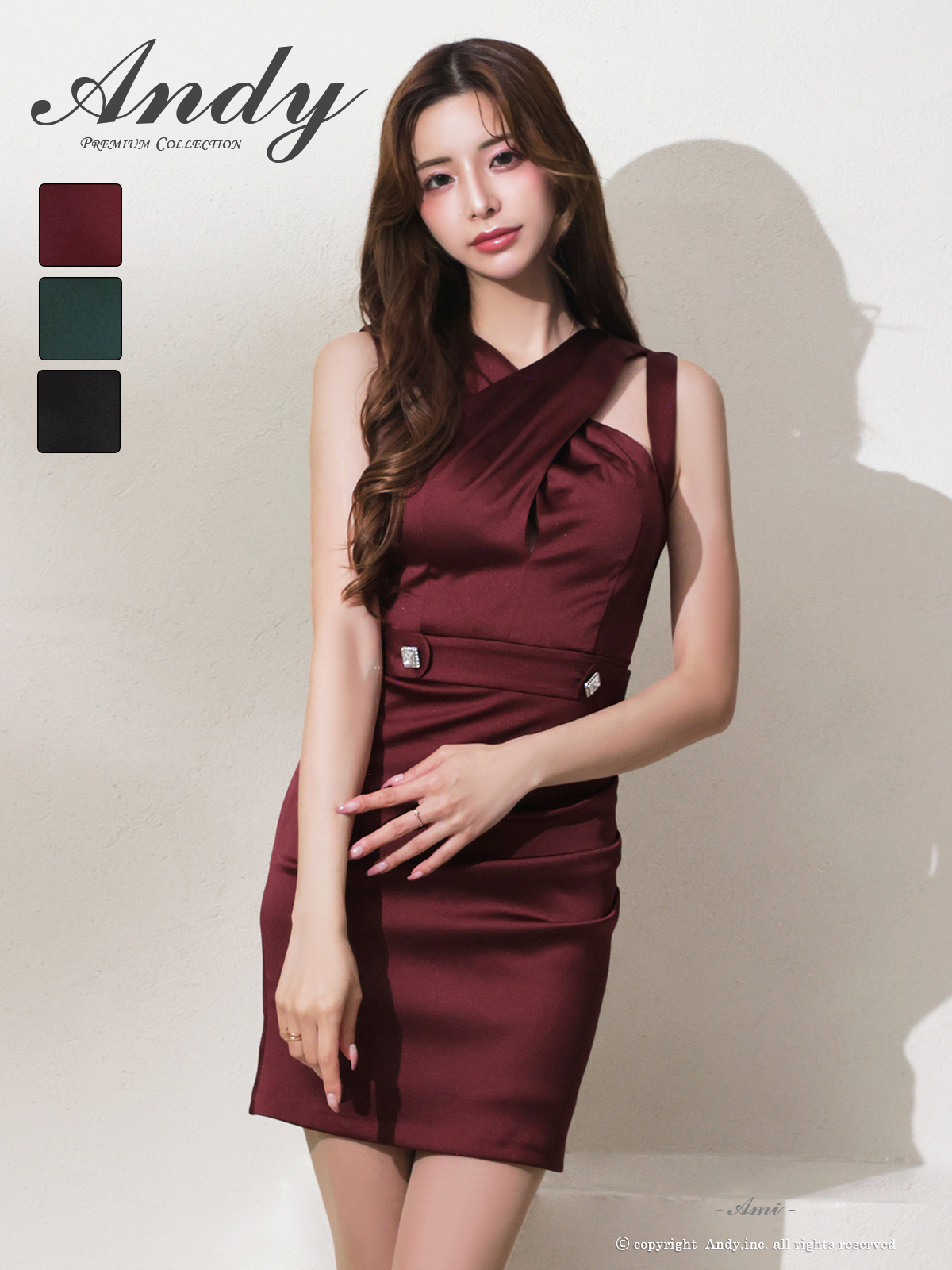 - > XSサイズあり【ANDY/アンディ】クロスネック/ カットアウト/ タック/ ビジューボタン/ ノースリーブ/ タイト/ ミニドレス/ キャバドレス[OF05]