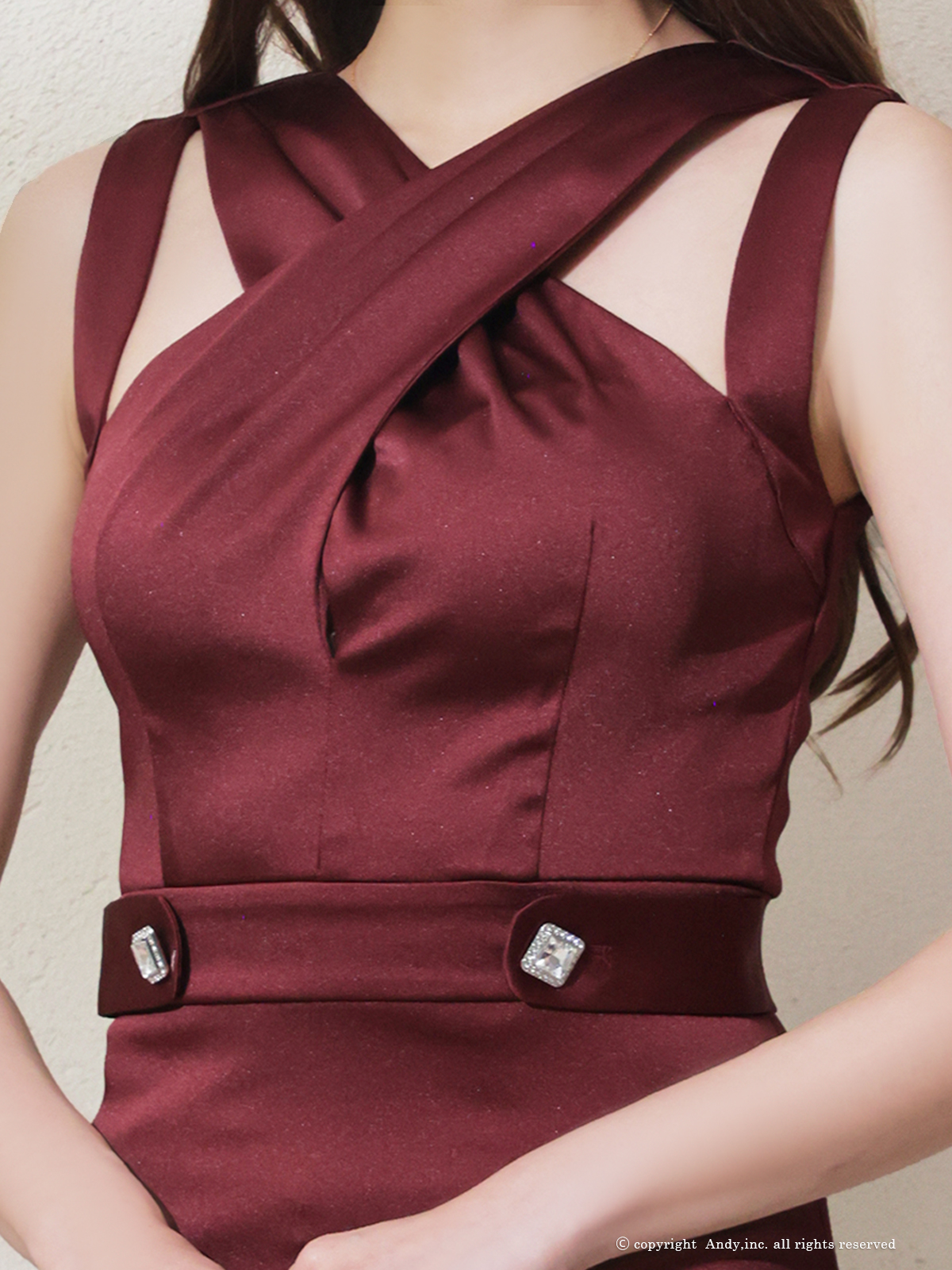 XSサイズあり【ANDY/アンディ】クロスネック/ カットアウト/ タック/ ビジューボタン/ ノースリーブ/ タイト/ ミニドレス/ キャバドレス[OF05] [OK3013-WR-2510]