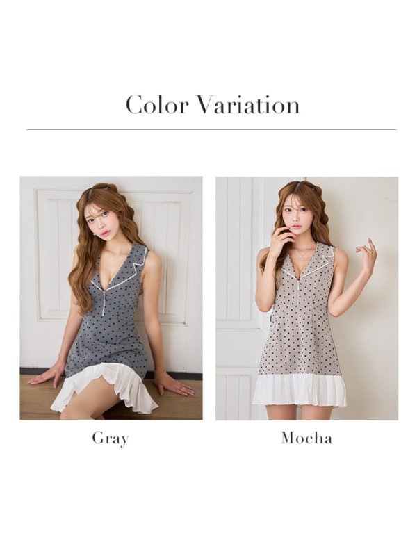 XSサイズあり【an/アン】ドット柄/ バイカラー/ 襟付き/ バストジップ/ パール/ パイピング/ 切替/ プリーツ/ フレア/ ミニドレス/ キャバドレス[OF05] [AOC3967-MOC-S251011]