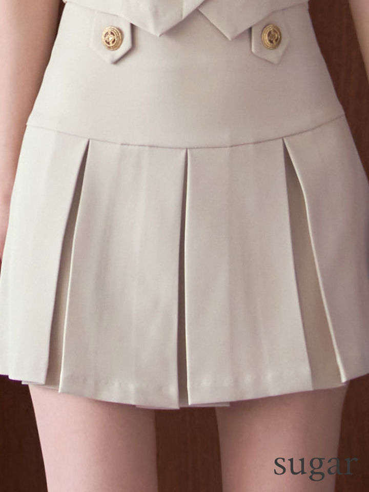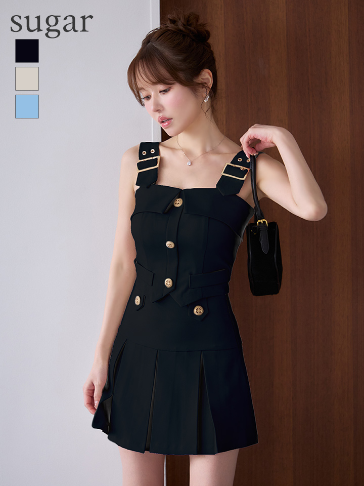 XSサイズあり【ANDY/アンディ】ノースリーブ/ ベルトデザイン/ スクエアネック/ フロントボタン/ ボックスプリーツ/ フレア/ セットアップ/ ミニドレス/ キャバドレス[OF05] [OK2970-B-S251014]