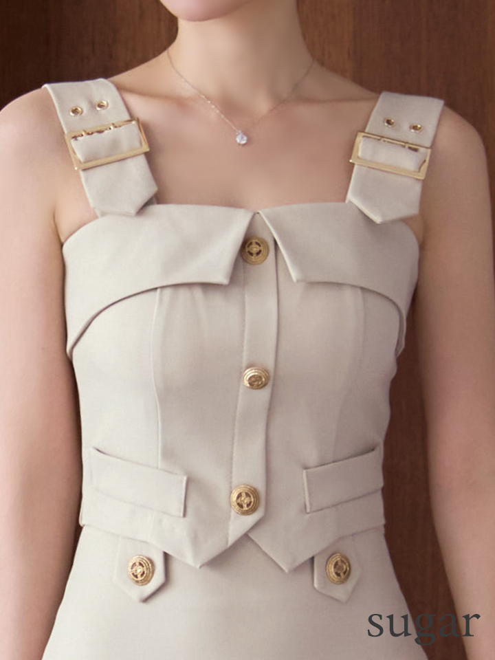 - > XSサイズあり【ANDY/アンディ】ノースリーブ/ ベルトデザイン/ スクエアネック/ フロントボタン/ ボックスプリーツ/ フレア/ セットアップ/ ミニドレス/ キャバドレス[OF05]