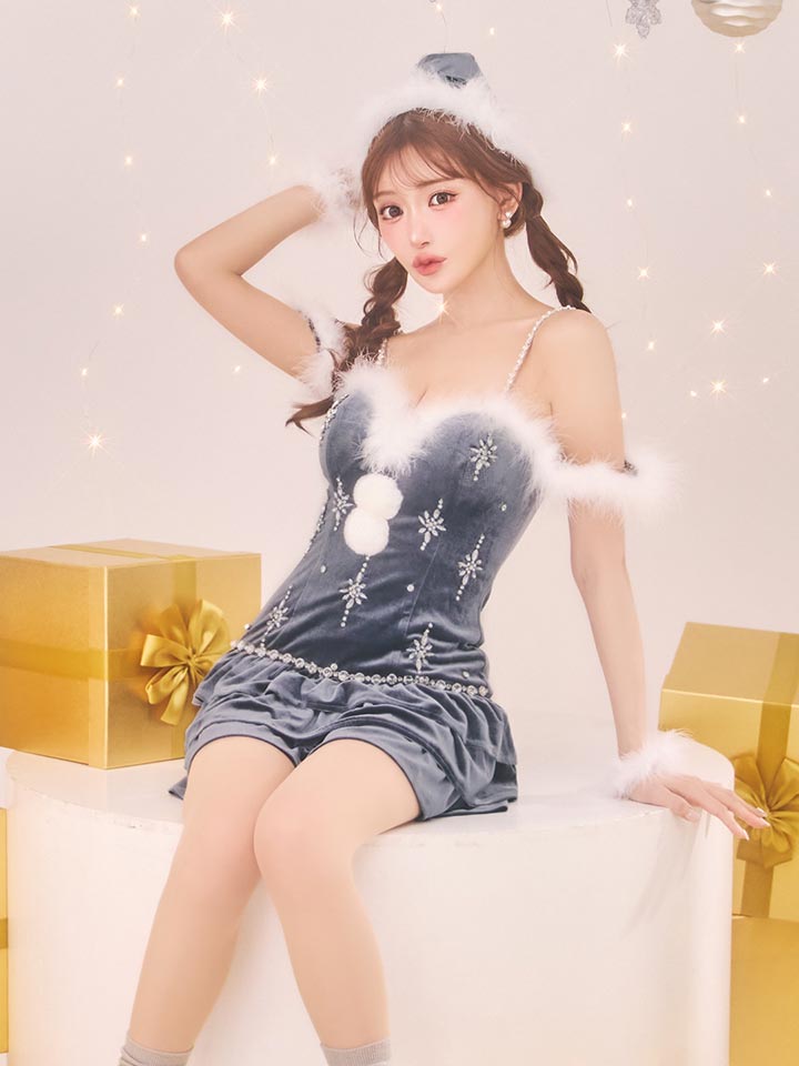 【即日発送】【送料無料!】【サンタ】 スノーフレークビジューフレアサンタコスプレ【コスプレ4点セット】【XS-Lサイズ/3カラー】[OF01] [SS-195-SB-dzw-WR-25AS]