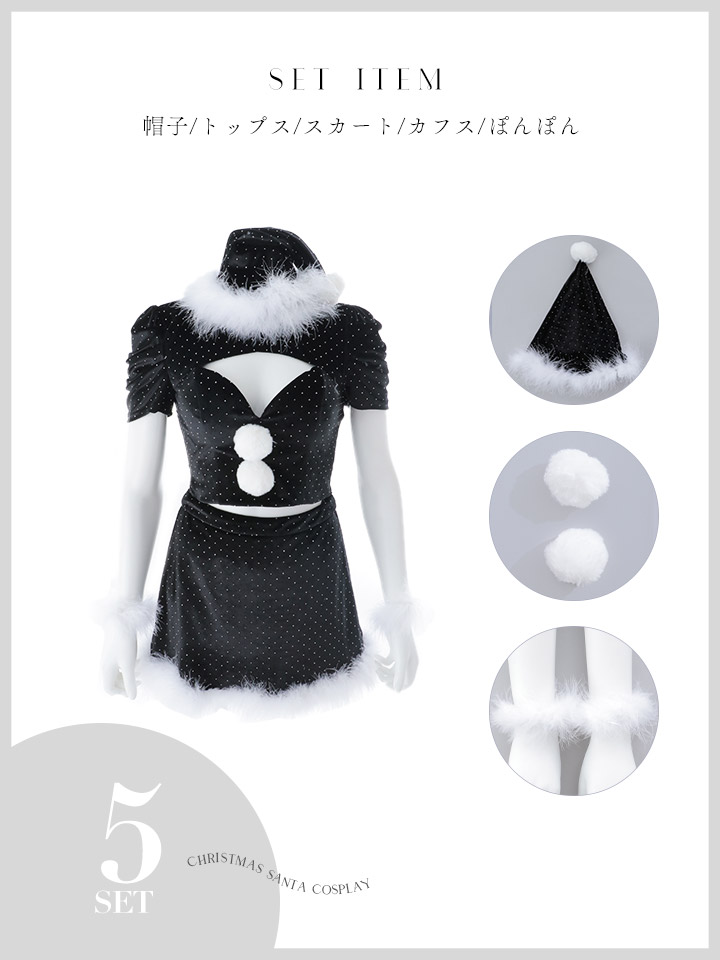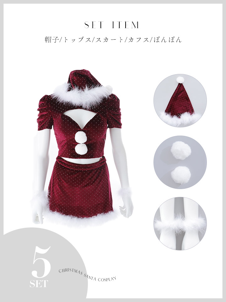 【送料無料!】【サンタ】パフスリーブストーンセットアップサンタコスプレ【コスプレ5点セット】【XS-XLサイズ/2カラー】[OF01] [SS-203-SB-dzw-WR-25AS]