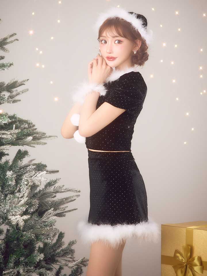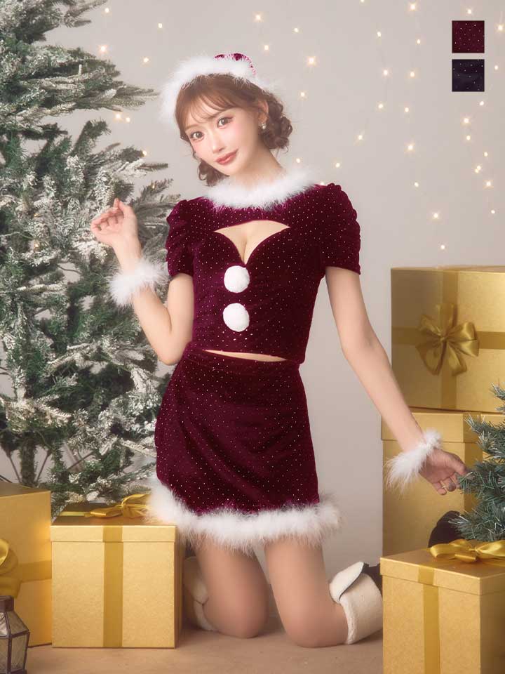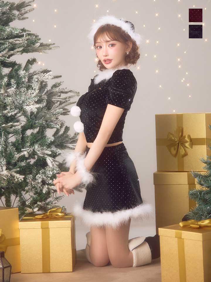 キラキラと輝くストーンを散りばめたセットアップサンタコスプレ♥