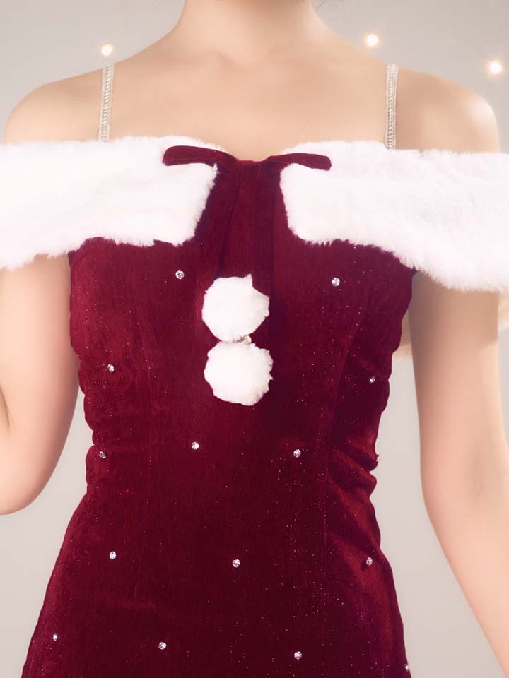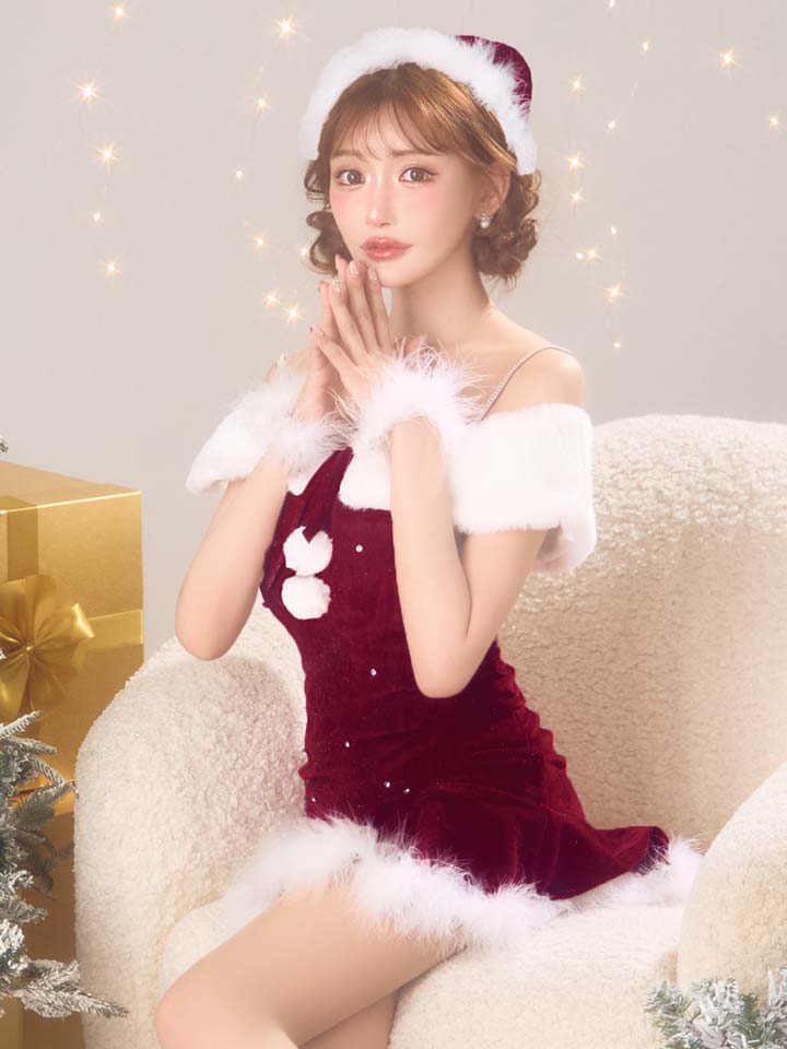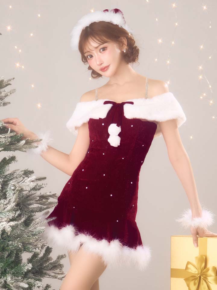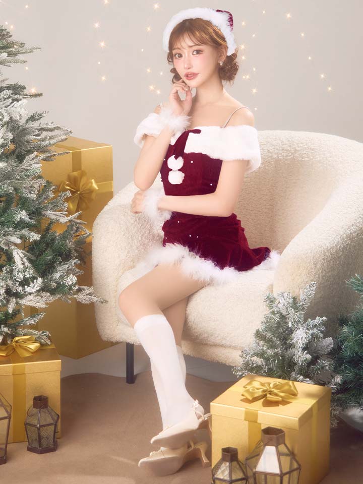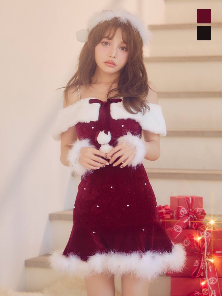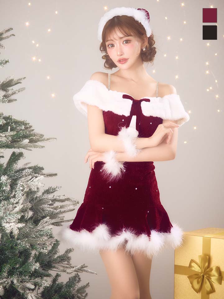 - > 【即日発送】【サンタ】オフショルファービジューマーメイドサンタコスプレ【コスプレ4点セット】【XS-Lサイズ/2カラー】[OF04]