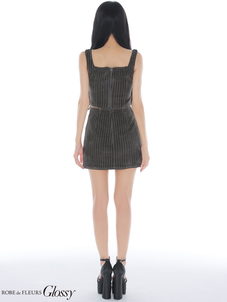 XSサイズあり【Glossy/グロッシー】コーデュロイ/ レースアップ/ ツーピース/ タイト/ ミニドレス/ キャバドレス[OF08]