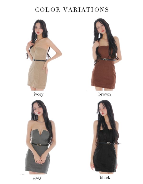 - > XSサイズあり【Glossy/グロッシー】ツイード/ ベア/ ベルト/ タイト/ ミニドレス/ キャバドレス[OF08]