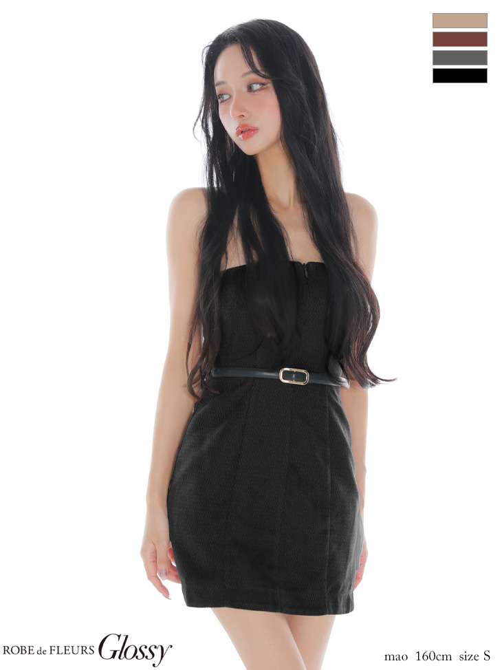 - > XSサイズあり【Glossy/グロッシー】ツイード/ ベア/ ベルト/ タイト/ ミニドレス/ キャバドレス[OF08]