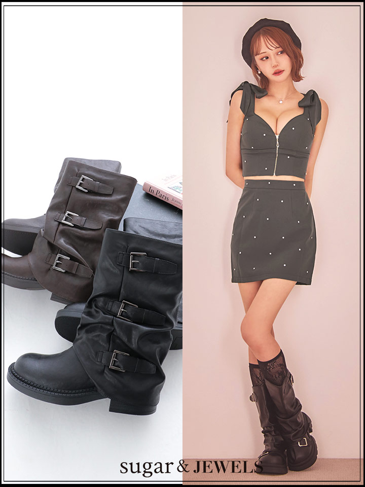 合皮ベルトショートブーツ【35-39サイズ/2カラー】[OF02] 【YN】